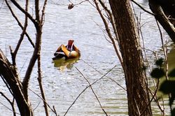 また、近くの荒池に 水鳥カラフルナンバーワン(?)のオシドリがいました。綺麗ですネ。