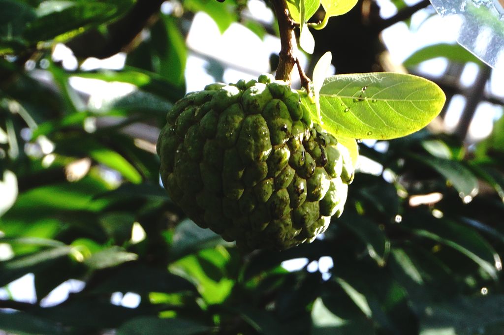 バンレイシ(別名 釈迦頭)、ブッシュカン(仏手柑)、同時に実が観れて幸運でした。